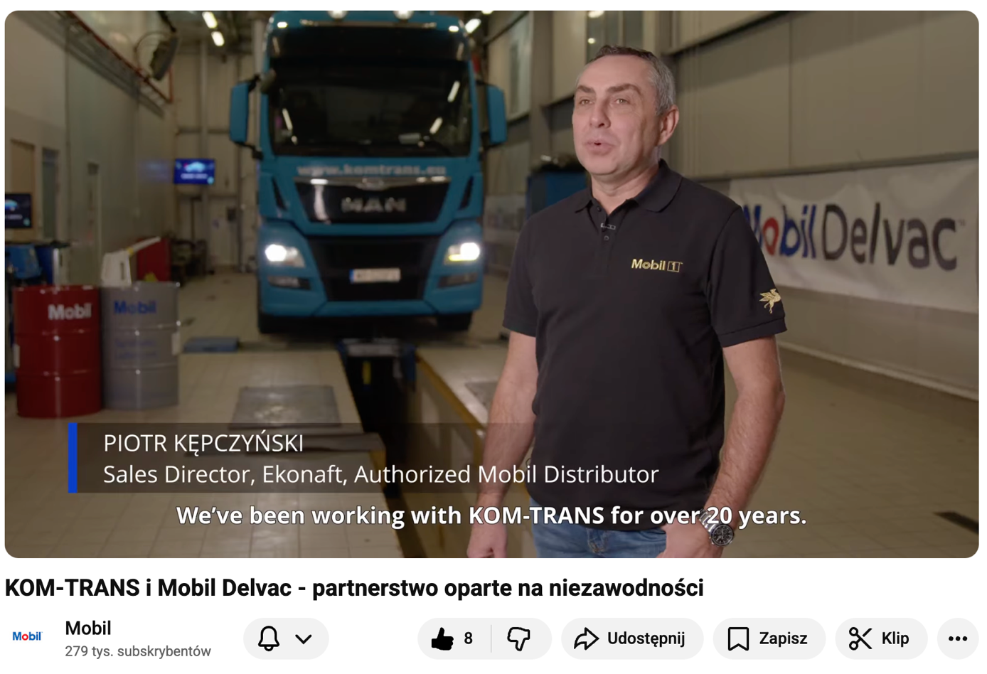 Założenia techniczne najlepiej weryfikuje codzienna praca floty. Dlatego Mobil od lat współpracuje z producentami OEM i firmami transportowymi, analizując ich rzeczywiste potrzeby. Jednym z użytkowników olejów Mobil Delvac jest OTK KOM-TRANS, firma działająca na rynku od 1999 roku, specjalizująca się w transporcie międzynarodowym i krajowym, która posiada własny serwis ciężarówek. Jej flota pracuje na długich trasach i przy wysokich rocznych przebiegach, gdzie niezawodność ma bezpośrednie przełożenie na rentowność.