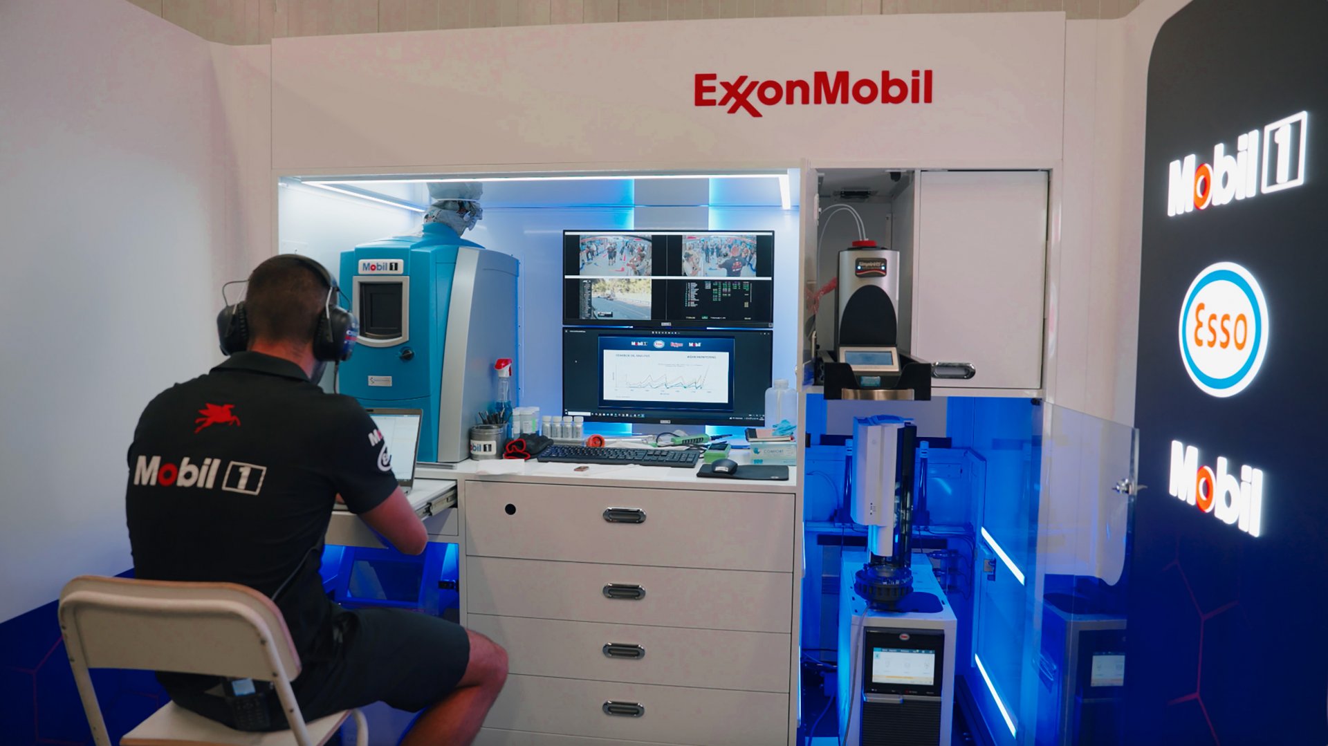 ExxonMobil w garażu zespołu Oracle Red Bull Racing posiada dwóch inżynierów. W trakcie weekendu wyścigowego analizują próbki paliwa i oleju w czasie rzeczywistym, korzystając z zaawansowanych narzędzi, takich jak spektrometr FTIR, chromatograf gazowy czy licznik cząstek. Analiza śladowych ilości metali w oleju pozwala wykryć mikroskopijne oznaki zużycia komponentów, zanim staną się zagrożeniem dla jednostki napędowej.